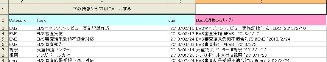 メールでRemember The Milkに複数リストの複数タスクを一括登録するVBA